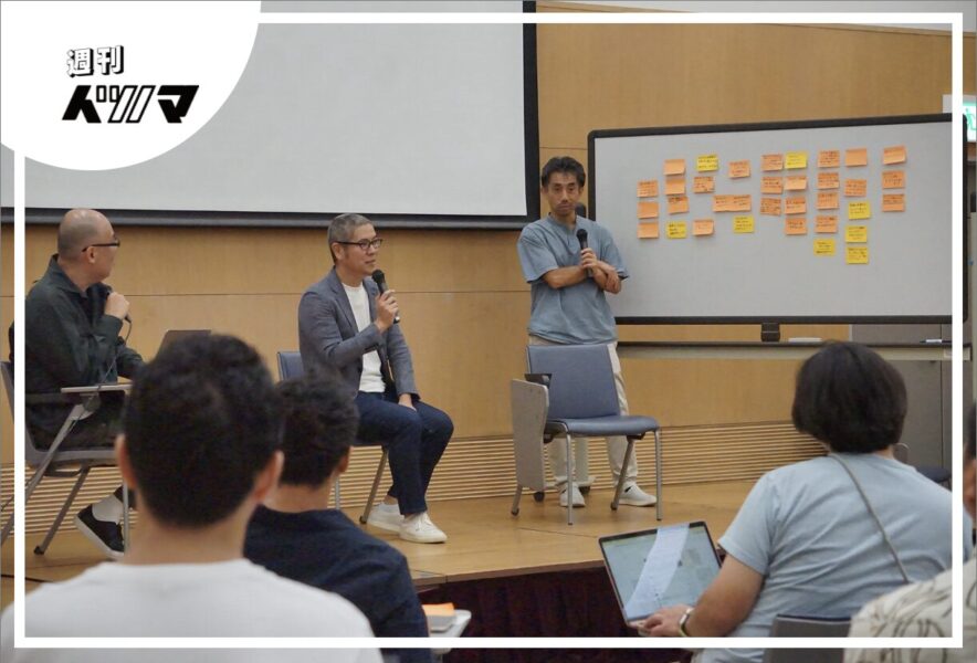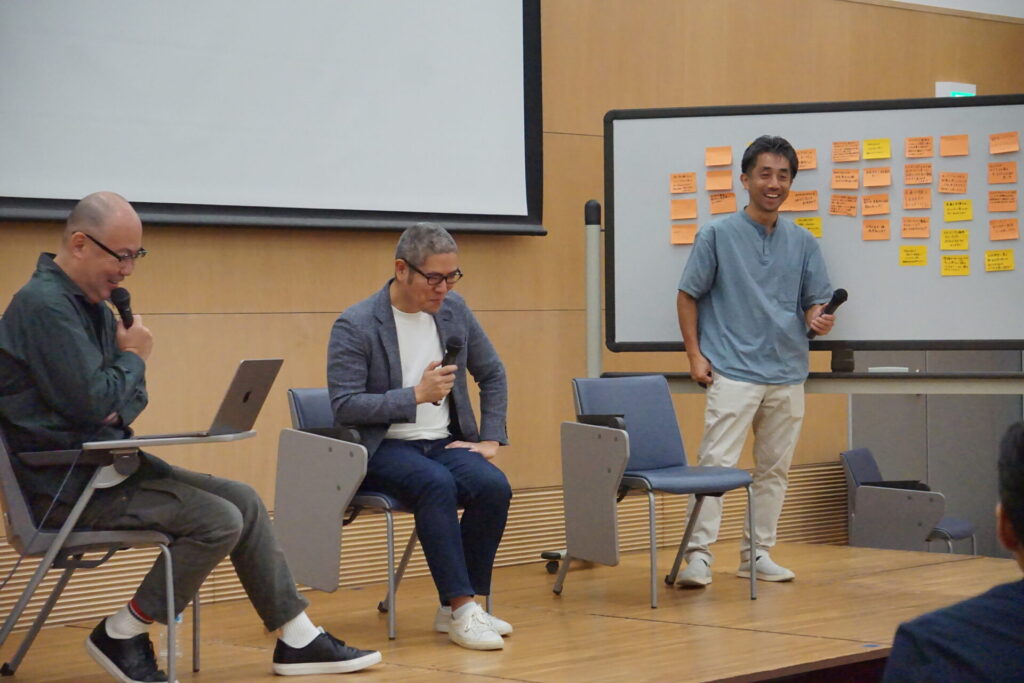 後半は、参加者からの質問を張り出しながら、イツノマとともに事業推進を伴走いただく一平ホールディングスの村岡浩司さんと一緒にパネルディスカッション